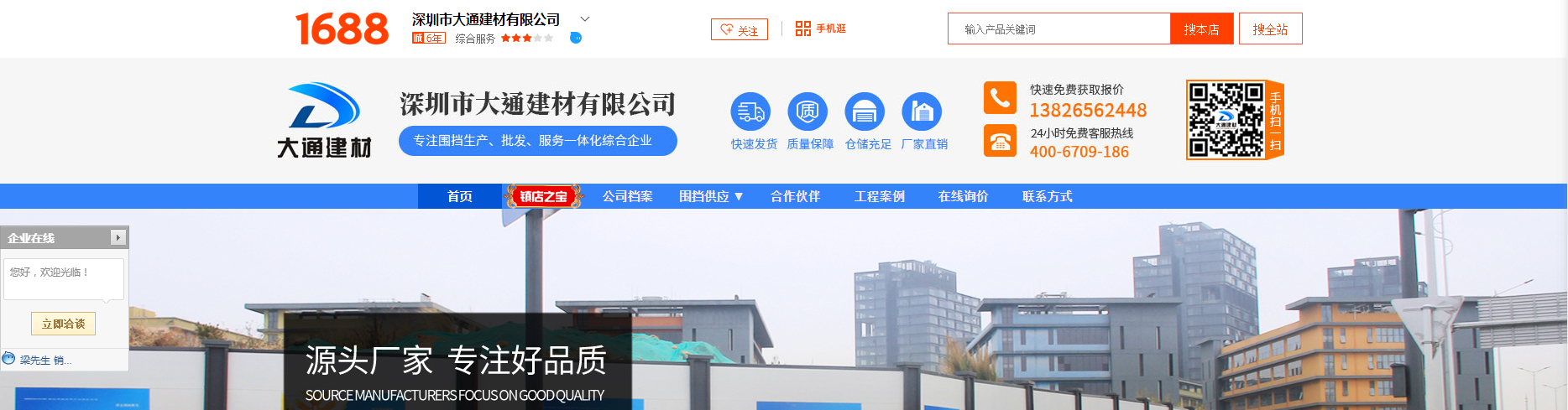 戶進入阿里巴巴大通官方店鋪,在大通官方店鋪每個頁面的左邊小方框有個“企業在線咨詢工具”描述自己具體的需求產品 與在線客服溝通 即可獲取相應的圍擋價格