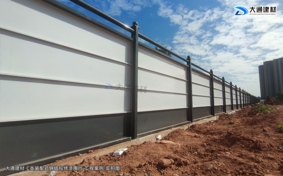 施工安全方案解決工程師,24小時在線等候您的咨詢!深圳市大通建材有限公司10多年來一直從事圍擋生產批發工作,在東莞設有大型鋼結構圍擋生產基地,那么大通建材C類裝配式鋼結構圍擋烤漆款有怎樣的規格特點呢?現在就與大通鋼結構圍擋小編一起了解一下吧。